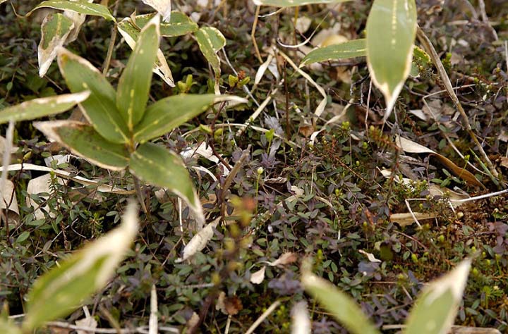| コメント:ツルコケモモは若干咲いている、という感じです。注意しないと見落とします。。 |