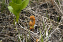 | コメント:今年は冷夏を予想させる、冷春とでも言うのでしょうか!?ものすごく寒くて、折角顔を出した水芭蕉も大きくなれずお仕舞いかな…。(photo by M) |