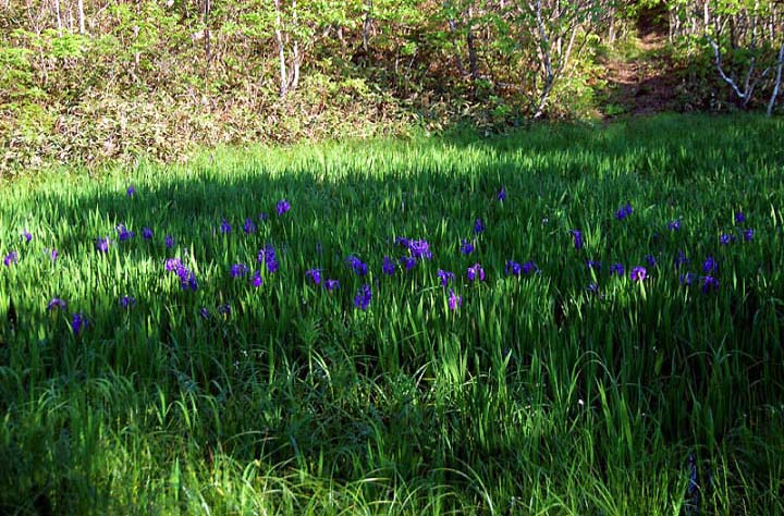 | コメント:ノハナショウブは下り坂のものもあれば、これからというのもあります。今、湿原に咲いている代表です。写真1、2。 |