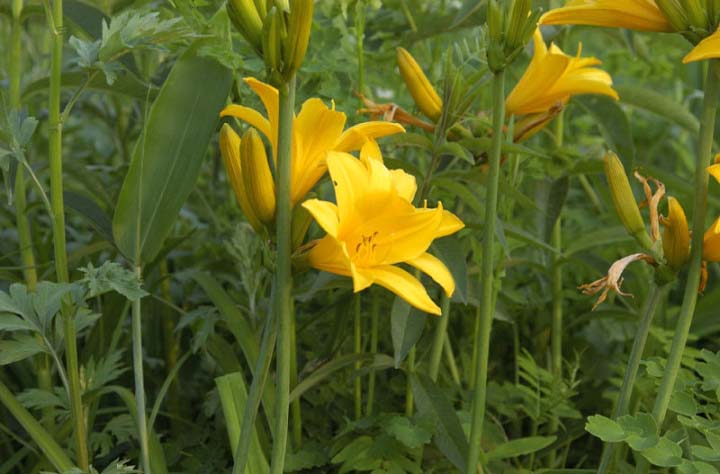 | コメント:タチギボウシはつぼみがほとんど。でも、中には早めに咲いているものも…。 |