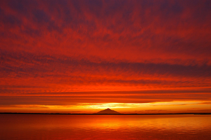 これは2006年8月18日のパンケ沼です。今まで見たことの無いような真っ赤な夕暮れが展開されました。実に見事の光景で言葉が出ませんでした。冷静に撮影するのが大変なほどの感動を味わいました。もう二度と出会うことのできない不思議な光彩かもしれません。