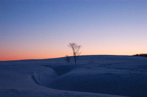 | 昨晩、あまりにも星がきれいだったので、早朝撮影に出掛けました。 今朝は随分冷え込んでいたので、装備万全で出発です! 今日は、久々利尻山(こんな感じをイメージしていましたが…。)が見えるかな〜と期待して、それを目指して行きました!途中トナカイ牧場を通りまして、トナカイ牧場温度計では、な、な、なんと!−28.6度!強烈な寒さでした!写真 トナカイ観光牧場を過ぎ、少し車を走らせたところで「今日の一枚!」を撮りました。 いざ、目的地へ!結構、雪が深いのでスノーシュー(洋風カンジキ)を履いて行くのですが、しばれ(寒いの北海道弁です…。)が厳しい分、雪の締まりもあって、歩きやすかったかな…。 が、しかし、利尻は全く見えず…。写真 ということで、目標を切り替え、明るい東の空を中心に撮影を開始!!