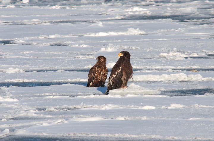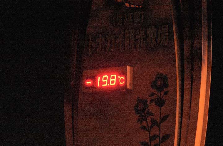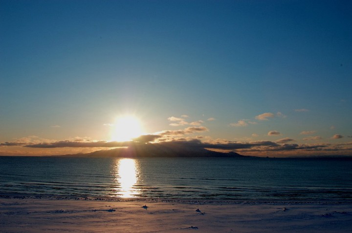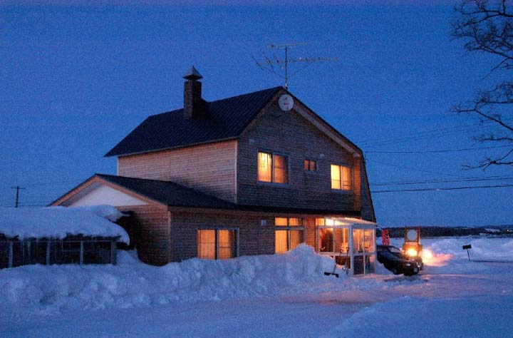 お昼から所要で稚内市へ行く予定で、とりあえず、カメラザックを車に積み込み出発しました。用事を足しているうちに、どんどん青空が見えるようになってきまして、写真が撮りたい病に罹患! 魚屋さんで買い物をしていると、すぐ前が海でして、そこに何やら物体を発見!! 早速、カメラを取り出し撮影してみました。私は鳥類に詳しくないので、名前が分かりませんが、とりあえず…パチ!ゴマフアザラシもいました。 あんまり天気が良いものですから、海岸線を通って家路に着きます。利尻山は雲がかかっていました。アップで…。もう一枚。 帰りは久々の外食ということで、豊富町の農村地帯にあります、ミセスロビンソンでハンバーグ定食を頂きました。なかなか美味しいお店ですよ〜。スローフードを掲げてかなり待ち時間はありますが…。ゆっくりとした贅沢な一時を味わえます。 そして、今日はこれで終わりではありません!! 実は、幌延近辺に差し掛かりまして、かなり、月夜がきれいであることに心が踊り、家に着いてから、寒さ対策を万全にして、夜間撮影を決行しました! いつものトナカイ観光牧場の温度計は−19.8度でした。午後9時頃です。これからどんどん寒くなっていきました。 月明かりでの撮影は、かなりの時間カメラのシャッターを開けたままになります。ですから、電子式シャッターのカメラ(電池で動く)ですと電池が直ぐに消耗し、長時間の撮影には不向きですから、このような場合は、機械式シャッターのカメラ(シャッターに電池は使わない)を使うことが多くなります。そのため、「撮れたて画日記」用に使用しているデジカメは寒さによる電池の消耗+デジタルカメラゆえのノイズ除去のため、夜間撮影には極度に不適なので、今回は車にお留守番…、としました。 がしかし!今日の一枚はどう見てもデジカメですよね〜。 そうなんです。一度、スノーシューを履いて丘の上まで登ったのですが、やはり、デジタルカメラで撮影したくなり、また車に戻ったのであります!そして、デジカメを首から下げ、電池の消耗を防ぐためにバッテリーを抜き、体で暖めながら丘を登りました。途中、一度下りた道を下から見上げてパチリ! そして、今日の一枚を撮ったのでした…。 結局、その後何枚か撮ったのですが…。やはり、すぐに電池がなくなり、7枚ほどでデジタルでの撮影は終了しました…。フィルムカメラで撮った写真は直ぐにアップできませんので、「撮れたて画日記」ではなく、そうですね〜、「出来立て画日記」(現像から…)コーナーでも作って掲載することにします。文章は、この「撮れたて画日記」を参照してもらう形になるかと思いますが…。 この日は、月明かりで利尻山をはっきり目視することができました。一応デジタルでも撮影したのですが、ピント合わせを失敗し、こんな写真になってしまいました…。フィルムではちゃんと撮れてるかな?? この晩は12時頃まで撮影が続き、翌朝も利尻山がきれいなような気がしましたので、朝5時起きしまして、再度同じ場所へ行ったのであります。その時の写真はまた別の日記で…。 |