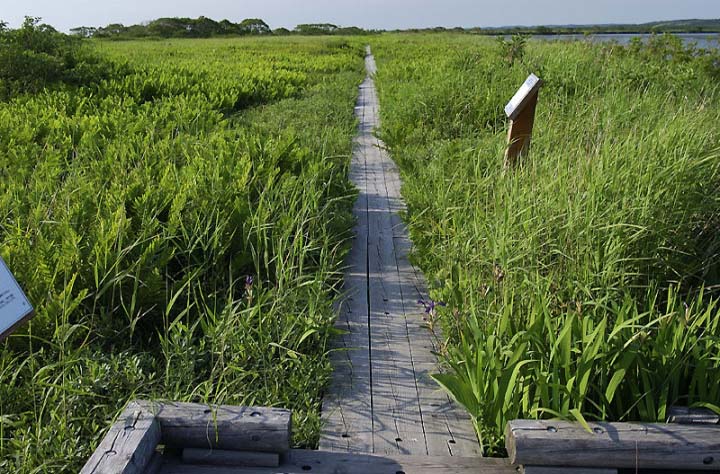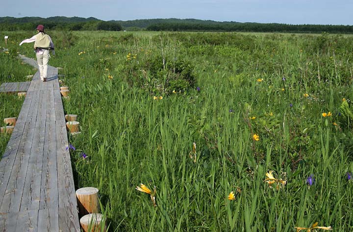 ここ最近、暑い日が続いておりました。雨も少なく、道内では少雨による農作物の被害も…、などと言われています。にも関わらず、花は随分咲いています。あまり、雨には関係ないのでしょうか…。 さて、この時期はもっぱら花撮影が多くなります。初夏の花を探しに行きました!! まず、海岸線では、タイトルにありますハマナスが咲いておりました。でも、なかなか群落は見つけられません。探せばあるのでしょうが、不精な私には…。ハマヒツガオ、ハマエンドウなども咲いていました。 セリ科の植物は今が盛りといわんばかりの咲きようでした。エゾノシシウドやエゾニュウ、エゾノヨロイグサなどが咲いていました。まだまだあるのでしょうけど、八方美人で一つのことを探求できず…、帰ってきました。 途中、浜里地区にあります、地平線クラブでソフトクリームを食べました!今日は暑さのせいか、かなりの人!!たくさんソフトクリームも売れたことでしょう。200円でかなりのボリュームがあります。そして、けっこう美味しいです!! その後、場所をビジターセンターに移しまして、今日は木道を通ってパンケ沼までの道のり片道3`オーバーを往復することにしました。いつもはこの辺で終わりなのですが、今日はその先へ…。ビジターセンターからパンケ沼まではこのようになっています。(木道沿いに敷設されている案内板です。)小一時間かかるでしょうか、歩行訓練になります! 延々、このような木道を歩きます。妻が先導します。途中、これ!と言った花もあまりないのですが、ツルコケモモとトキソウはけっこうありました!ホロムイイチゴの実やエゾヒツジグサなんかも沼にはあります。時期が過ぎているヒオウギアアメなんかも咲いていました。ノビタキなどの野鳥もたくさん飛んでいます。(もう一枚) さらに、チシマアザミなんかも咲いています! 小一時間ほど歩きまして、パンケ沼に着きました。ここは、ビジターセンターより1週間ほど早く花が咲きます。暖かいのでしょうか!? ノハナショウブはビジターセンターよりも咲いています。タチギボウシなどの花芽もあります。今にも咲き出しそう…。オオヤマフスマという花だと思いますが、小さな白い花も咲いておりました! また、スズメノヤリ、ゴウソ、イグサなどの植物も見られました。サロベツ原野には不思議な植物がいっぱいですね。 パンケ沼でも木道を周りながら植物を楽しむことができます。 そして、パンケ沼での散策も終え、来た道を戻っていきます。パンケ沼から数百メートルでちょっとした展望台があります。ここからの眺めは、見渡す限りのサロベツ原野を堪能することができます! ちなみに、ビジターセンターの周回木道では、サワランが咲きだしました!濃いピンク色ですごくかわいらしい花です。オゼコウホネも咲いています。クロバナロウゲも咲いています。モウセンゴケも大きく成長していますが、まだ、花は見えません…。ノハナショウブはもう少しかな…。 |