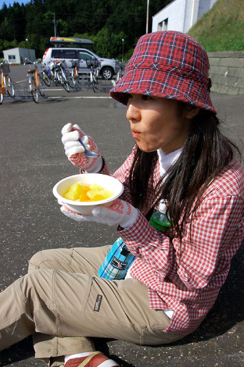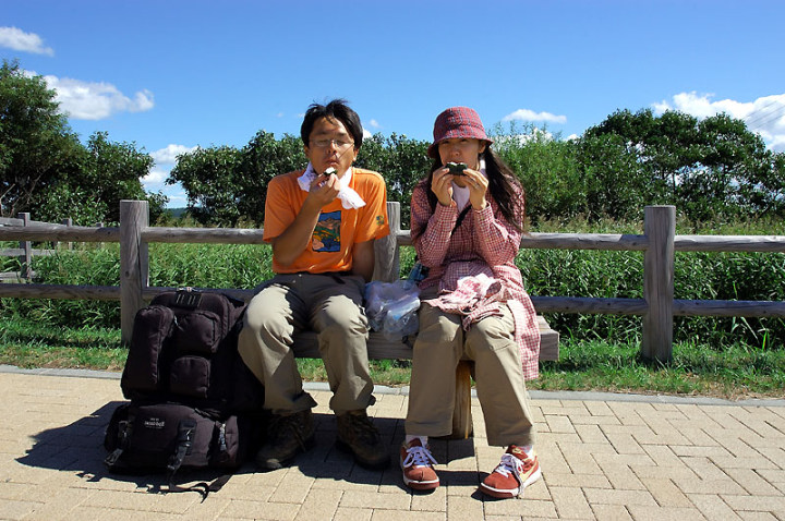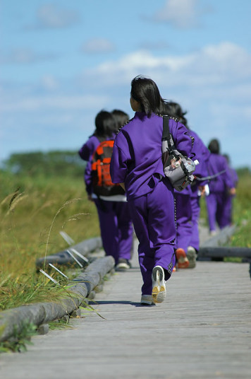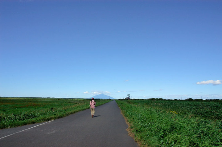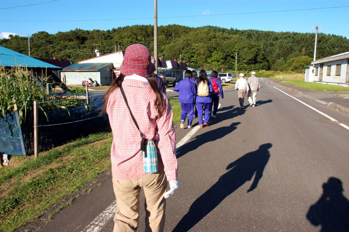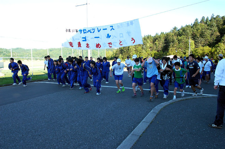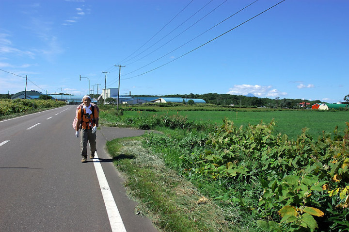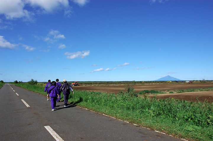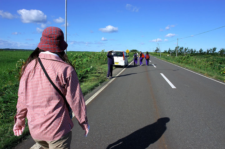 9月4日サロベツレースという地元中学校の行事に参加しました! これは、中学生が3コースに分かれてサロベツ原野を走ったり歩いたりし、己を研き故郷の良さを再認識する、というものです。一般参加も可能です。以前から参加してみたかったのですが、なかなかできず、今年は真っ青な青空も広がっていましたので、思い切って参加してみました!一般参加は10名程度で、70歳代のお二人は10`コース、私たちは二人は27`コース、中学生を含めた他のすべての方は42`コースでした。 スタートで走り出す子もいまして、そのままずーっと走っている子もいました。さすが中学生!トップは5時間台で走りきるようです…。 まずは、街の中をテクテク歩きました。私たちは最後尾からのスタート! 市街地から5`くらいの地点に北海道電力の風力発電試験設備があります。ここをすり抜けて国道40号と交差するのですが、そこも突っ切って、さらなる田舎道へ…。 途中、先生たちが見守ってくれています。 第1関門です!地区の会館をお借りしておりました。私はトイレを借用。 チェックポイントは5ヶ所あります。でも27`組は3ヶ所でした…。保護者が手伝ってくれています。冷たい水が美味しかったです。それぞれが通過タイムを記入していきます。 このような農村地区をひたすら歩きます。(写真1) オンネベツ川という私のちょっとした撮影スポットも通過します。いや〜、こんなところまで歩いてきてしまった…。 トラクターとあちこちですれ違いました。のどかなレースです…。 先を行く3年生の女生徒が休憩しておりました。カメラを向けると笑顔で応えてくれました。利尻山を背後に記念撮影です…。 そして、サロベツ原野の玄関口ともいえる、ビジターセンターが近づきました…。到着です!ここが第2関門です。 42`組はここからパンケ沼まで木道3`ほどを歩きます。私もそこを歩きたかったのですが、27`組はここを右折して一般道を歩くことになります。 でも、悔しいので、周回できる木道だけ歩いてみました。どんどん秋の気配が感じられるサロベツ原野になってきました。 後続の中学生が木道を歩き第3関門のパンケ沼を目指します。 そして、私たちはおにぎりを食べ休憩です。給水部隊の保護者の方は次の地点へ向けて撤収しました。 結局、ここではビジターセンター巡りや昼食で小1時間費やしました。 そして、また、歩き出します。 途中、知り合いのお宅の倉庫にお邪魔し、やぎのメイちゃんや和牛、ニワトリ、ポニーなどを観察したりしました。レース中なのに…。 この頃からだいぶん疲れが出てきました。というのも登山の訓練になれば…と思い、10`程度のカメラザックを背負い、登山靴で出かけたのがそもそもの誤り…。全身筋肉痛での歩行という状況でした。山登りとはまったく違う筋肉を使うようです。アスファルト路面を歩きますので、反発性が強いためか、足への負担も大きかったように思います…。 そして、やっと最後の第5関門!私たち27`コースにとっては第3関門ということになります。ここまでで約20`ほどのようです。まだ7`あります…。 空は相変わらず青空で気持ちが良いのですが、如何せん、これから迎える坂道を思うと…、気分はどんより…。 途中、サロベツレースを取材に来た同僚の車に荷物を載せてもらおうか!?という話しも妻との間で出たのですが、ここまで来たからには、最後まで!ということになりました…。 そして、やっとのことでゴール!結構辛かった27`です。これで、身軽だったらどうだったのでしょうか!? 妻は身軽だったためか、最後まで疲労を見せず、余裕のゴールでした〜。 ゴール後、フルーツポンチが提供されまして、美味しいのなんの…。 疲れた一日でしたが、楽しい一日でした〜。 幌延中学校の関係者のみなさま、ありがとうございました〜。 |