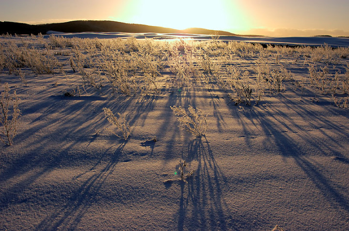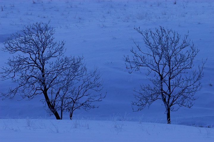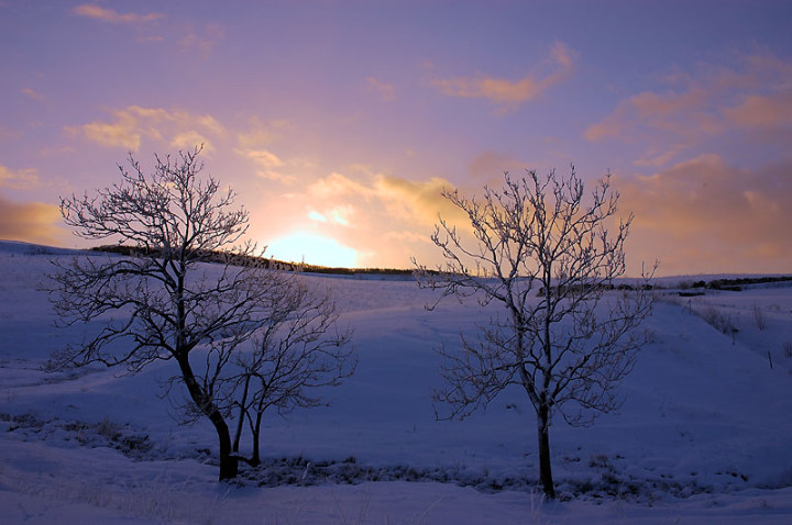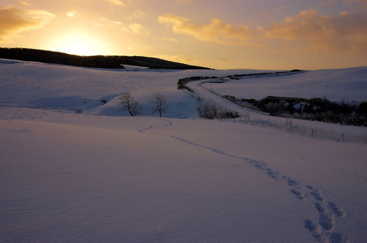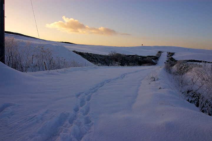 またまた、久々の早朝撮影となりました。 先回の早朝撮影以降、いつも、撮影機会を狙っていたのですが、本当に天候が悪くて、全く撮影する気にもなりませんでした。曇天が似合わない景色が多いのかな…。撮りようによっては、すごく良い写真も撮れるのかもしれませんが、どうも、太陽がないと、私はダメなんです…。 ということで、朝5時頃起床し、ベランダから空を眺めると、星が瞬くとてもきれいな朝になりそうな気配でしたので、12月の寒い様子を見に行ってきました。 遅い冬と言っておりましたが、なんだかんだと言いつつも冬はやってくるもので、かなり寒さを感じる日々となってきました。 今日は、まだちょっと早いかな〜と思いつつも、北進地区へ行ってみることにしました。 まずトナカイ牧場の温度計を見ますと、−17.8度!!今季一番かな…。 今日は、北進の丘(私が勝手に命名)か北進の一本松(これも同じく…)のどちらにしよう!?と悩みながら、いつものスポットへ車を止めました。 しかし、北進の丘を眺めると…、残念ながら厚い雲が立ち込めております…。これでは、ちょっと撮影は難しい(撮り方はあるのでしょうけど…)と断念…。 なので、一本松方面へ…。こちらの方がちょっと遠い…。夏場、普通に歩きますと、10分くらいで着くのですが、何せ、雪道ですから…、そうですね、重たいザック、重たい三脚を抱えますと、20分くらいはかかるでしょうか…。 まだあまり積もってもいないので、スノーシューは履かず、防寒長靴のみで行きました。 テクテク歩いて辿り着きましたが、んー、家で感じたほどにはパッとしない景色かな…。ちょっと心配なのは、私の大好きな一本松の枝が折れていることかな…。これ、どうしたものでしょうかね…。もう、修復はできない状態なのですが、取れるわけでもなく…。でも、私が取るわけにもいかないですよね…。冬の厳しい気候で今シーズンあたり取れるかな〜と思っているのですが…。 撮影は、まだまだこれから!! チョロチョロと流れる川のくぼみ沿いに2本の木が並んで立っております。これも、じっくり撮るといろいろな表情をしてくれそうな木ですね…。でも、まぁ、木というのは、どれもこれもそれぞれの表情があって、いいな〜と思いますね…。 今朝は、時間の経過と共に、どんどん表情が変わっていきまして、いい感じになってきました〜。2本の木も…。 一本松もきれいな朝陽に色付いた雲と一緒にいい感じに佇んでおりました。 と眺めていると、仕事の時間が迫ってきていますので、後ろ髪を引かれながら、一本松を後にします。テクテク歩きまして、ようやく車まで…。 帰りがけに、トナカイ牧場付近の牧場に生えている雑草が霧氷のような表情を見せてくれておりましたので、ちょっと立ち寄って、道路沿いから少し牧草地へ入り、撮影です。 こんな感じの朝でした。 いや〜、随分寒くなってきたものです。 これからまだまだ寒くなるでしょうね…。体も寒さに慣らさないと…。 |