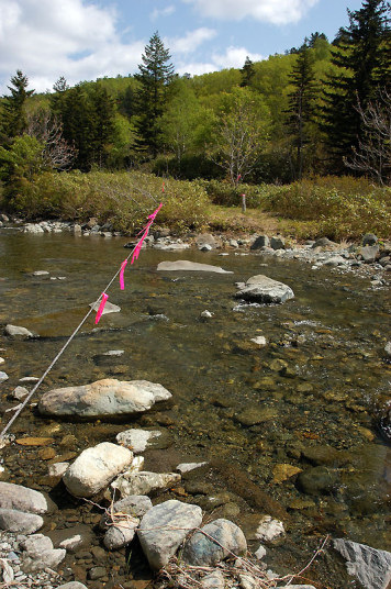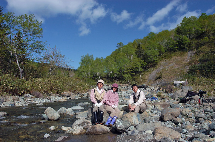 またまた、テシオコザクラ探索です。 3週連続!!今日こそは、一面のテシオコザクラを見たいものです。 いつものように川を2度越え、入り口まで到着。テクテク歩くこと20分少々。道沿いには、ワラビがニョキニョキ顔を出しておりました。そして、エゾカンゾウの花目もありました。ハクサンチドリも少し咲いておりました。そして渡渉。今日はさらに水かさが減り、長靴でも十分に渡れる水量でした。 現地到着。そして、歓声!!一面のテシオコザクラです!!これは見事!! その後は、あちこち見ながら、黙々と撮影を楽しみました〜。(写真1,2,3) 帰りに、お約束の記念撮影です。今日は、度々登場する翔ちゃんと一緒でした〜。 テシオコザクラを次に見るのは来年になりますでしょうか…。 今年は、同じところに咲く、テシオソウ(オゼソウ)を探しに再訪したいと思います。 それにしても、一面のテシオコザクラ畑、圧巻でした〜。満足満足!! 車で街へ戻る途中、ワラビ、ギョウジャニンニク、ウドを採って、これまた満足満足!! |