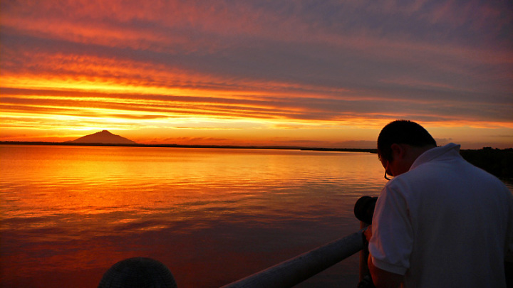 今日は、6時頃に仕事を終え、久々に夕陽撮影に出かけました。場所は、夕陽スポットのパンケ沼です! んー、今日もまた面白い表情でした〜。と言いますか、怪しい空でした。 西の空は厚い雲で覆われていたのですが、地平線から少し上方まではくっきり雲が無い状態です。これは、雲が焼ける条件が整っているではありませんか!? ちょっと暮れる時間が早くて、カメラのセッティングに焦りましたが、なんとか撮影ができました。 予想通り、利尻山上方の雲は夕陽に照らされて不思議な彩りに染まってゆきました。雲の形も興味深いものでした。時間とともに強烈な赤になってゆきます。 今日は、空が見える空間がわずかでしたので、日没後の撮影はできませんでした。雲が無ければ、空はきれいなグラデーションだったことでしょう。 撮影の途中、猛然と車でパンケ沼に来た方がいまして…。誰かな〜と思ったら、パンケ沼の一番近くに住むお寺の奥様でした。台所から空を見たら、もの凄い赤い空で、急いで来ちゃった〜と言ってました。一通り写真を撮られたあと、一心不乱に撮影をする私を激写しておりました!あまり撮ってもらうことはないだろうから…、って。そう言って、帰って行かれました。その場に住む方でも、珍しい空だったようです。 |