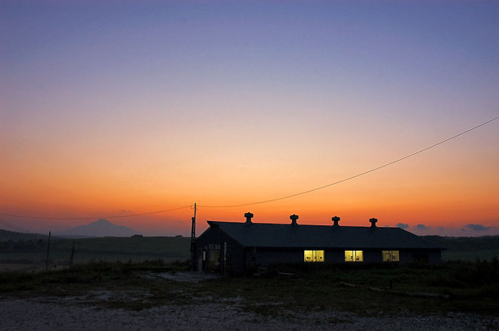 自宅から車で40分ほど走ると「アトリエ華」という喫茶店があります。稚内市の勇知地区にあります。 奥様が隠れ家的喫茶店で、摘み立てのハーブティー、紅茶、コーヒーなどを出してくださいます。 一番星が出るまでゆっくり寛いでください!と勧めてくださいます。 ご主人は画家さんです。牛舎を改造したアトリエ兼展示室がのどかな雰囲気を醸し出しております。 室内は、これまた絵画のような窓が周囲を包んでいて、本当に贅沢な時間を楽しむことができます。 今日は、兄が遠方から帰省していましたので、両親を伴い、アトリエ華でしばしお茶しながら楽しんできました。 すると、隠れていた利尻山が日暮れとともに次第に浮かび上がってくるではありませんか…。 そして、窓から夕陽を見てしまうと、写真心がうずき、外に出て写真撮影をしてしまいました。 とっても大きくて真ん丸の太陽が丘に沈んでゆくのを見つめながら、しばし北の大地の大自然を満喫した一日でした〜。 その後、ミセスロビンソンというスローフードのお店に夕食を食べに行きましたが、その途中も幻想的な景色を楽しみながら車を進めました。 けっこう、魅力的なスポットがたくさんある勇知、兜沼地区です。 |