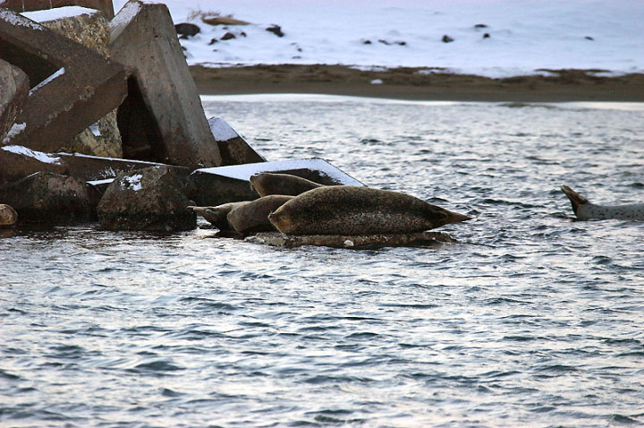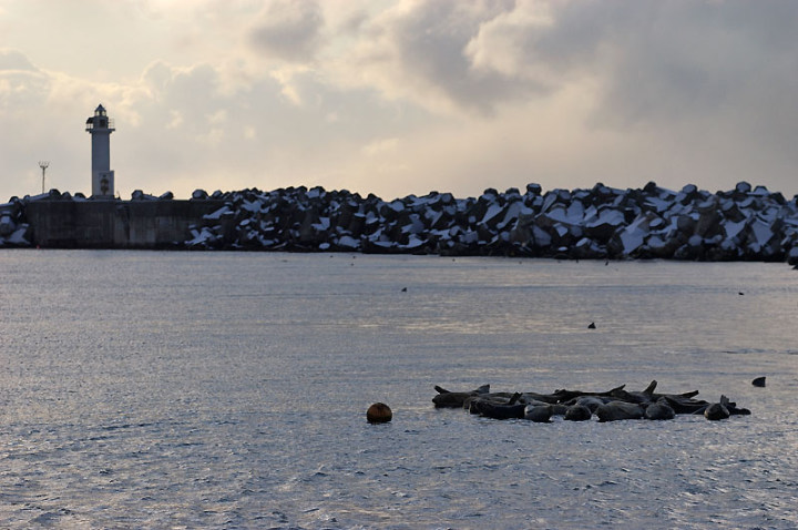 今日は久々に写真撮れまして、嬉しい週末でした〜。 午前中はあまり天候がよろしくなかったのですが、昼から、ちょっとだけ光が差し込んだな〜、と思いましたら、買い物で稚内に向かう途中、利尻山がぐんぐん見えてきました〜。結構、幻想的な利尻山が出現です!!こちらは暗くて、利尻山に光が差し込んでいる。 なかなかの景色でした。そして、アップも…。利尻山の荒々しさが素晴らしい。大好きです。まだまだ平地は初冬の北海道ですが、もう、利尻は厳冬期です。 そんな、利尻山を撮影して、なかなか目的地の稚内へ辿り着けない…、と思っていたら、さらに目的地を遠くする方々が…。 冬の時期によく見かける鹿の群れでした。 そして、さらに車を進め…。またしても寄り道…。 きれいな漁港ですよね…。これは、稚内市抜海漁港。 天気がいまいちですが、その分いい感じの光が差し込んで気持ちよい空でした〜。で、ここは、ゴマフアザラシで有名なスポット。いますいます…。 その後、ようやく稚内へ辿り着き、年末のいろいろなお買い物をしてきました…。帰る頃にはすっかり真っ暗…。でも、楽しい一日でした〜、久々に…。 |