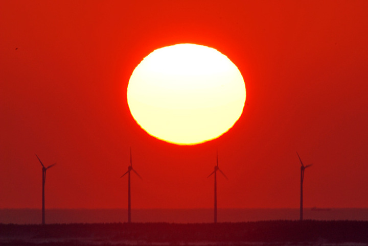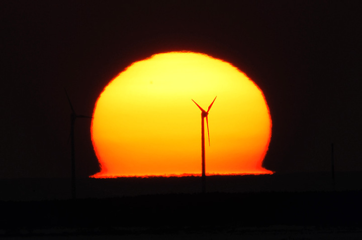 | 今日の一枚! 大きな夕陽と風車 2007/02/25 |