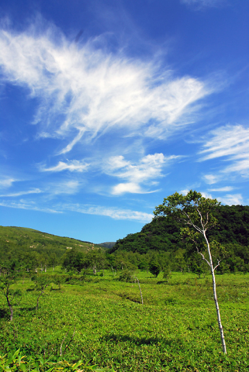 テシオコザクラと並んで、幌延町の希少種と言えば、このテシオソウ。 尾瀬に咲くオゼソウと同じ植物のようです。以前は、別ではないか…、と言われていたようですが…。 そんな珍しい植物です。 この日は、とっても天気が良い!! しかし、テシオコザクラの時期は笹狩りなどしてくれるのですが、この時期は伸び放題。進むのに難渋しました…。 なんとか到着。 が、しかし…、既に花期は終わりという感じ…。 来年はもう少し早く訪れてみたいものです。 |