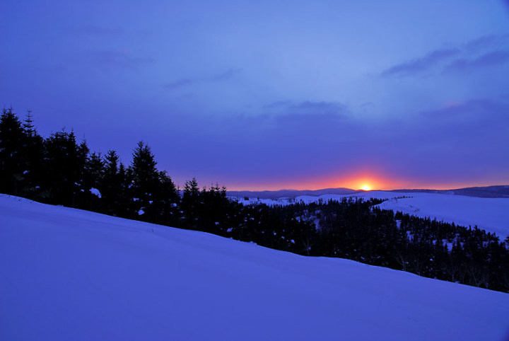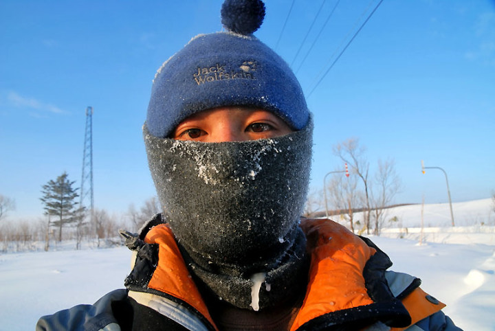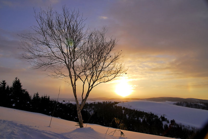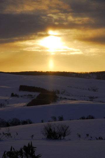 まぁ、とにかく寒いです。 −29.4℃といったら…。極寒ですよ。 前夜に星が輝いていて、天気予報も良かったので、久しぶりに利尻山が見られるかな〜、と思い、前日に引き続き、またまた北進地区へ…。 がしかし…。 あまり天気がよろしくない…。ということで、利尻山はあきらめ、散策に…。 スキーで30分くらい歩くと、この木があります。結構最近のお気に入りです。そこからさらに20分くらいせっせと歩きますと、このような場所へ…。たくさんの木々に阻まれてこれ以上は進めないような感じです。残念ながら利尻山もここからは望めそうにありません。 日の出です。寒すぎるからか、サンピラーのようなものも見えます。 そして、白樺でしょうか…、木の側で一休みして、朝陽を眺め、そして帰路へ…。そろそろ仕事に遅刻する時間です…。 帰る途中にそんな時間ないのに、またサンピラーのようなものを見て、撮影…。 行きに1時間ほどかかりましたが、帰りは頑張って30分程度で車に戻ることができました。 辿り着いて、自分を写してみると…。汗でしょうか…、つららになってました…。 −29.4℃恐るべし!! |