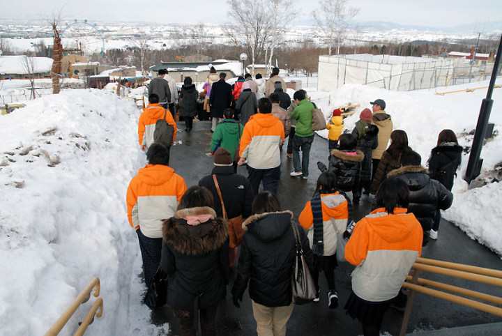旭川市で有名になりました旭山動物園に行って来ました。もう凄いバスの行列…。 開門と同時に長蛇の列。 平日だというのにこの人込み。休日だともっと凄いのかな〜。 午前11時から始まるペンギンのお散歩には、見物客がこれまた凄い数。でも、ペンギンの愛らしさに思わず笑顔になりますね。 アザラシ館なども行きました。 ホッキョクグマも、何頭かは寝ておりましたが、一頭だけ孤軍奮闘で頑張ってサービスしてくれましたが、なんとも眠そう…。 人気が出るだけのことはあって、趣向の凝らした動物園です。 またゆっくり、じっくり観察したいものです。 |