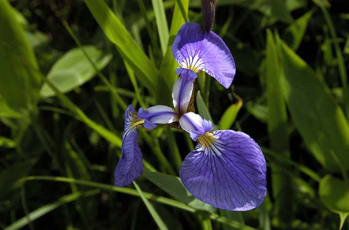 カキツバタは、サロベツ湿原に咲く3つのアヤメの中では、一番地味に思えます。 湿原のアヤメは、はじめにヒオウギアヤメが咲きます。これは、アヤメの中では一番鮮やかで華々しくみえます。次に咲くのがこのカキツバタ。最後はノハナショウブです。ノハナショウブは外花被片の基部に黄色の筋が入りますし、全体的に濃い色合いです。ノハナショウブはしっとりと艶やかという印象を受けます。 そう見ると、カキツバタが一番オーソドックスな印象を受けるのは私だけでしょうか…。花の数も多いからかもしれませんが、私にとっては一番メジャーなアヤメです。 でも、よくよく観察すると、きれいで明るい青色の花ですね。 どの花もそうですが、旬はその花の最大の輝きなのでしょうね…。 |