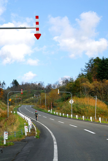 自転車で町内の峠を3連続で駆け抜ける! という自転車の企画をしまして…、出発!!マチを出発し上幌延→上問寒→日曹(豊富町)→北進というルート。 途中、酪農地帯を抜けて行きますが、酪農家さんの敷地に子牛がいたのでちょっと寄ってみることに…。妻は先を急ぎます。 自転車を子牛小屋に立てかけたところ…。 小屋から人を呼ぶ声が…。 そうなのです。 少し農作業の休憩中だったご主人が、子牛の入っていない小屋でお昼ね中でした…。そこへ自転車を立てかけたものですから、ご主人ビックリ!お子様のおふざけと思われたようでした〜。 なので、名乗り、しばし談笑。 もともと知り合いの酪農家さんなので、"いや〜、すみませんでした…"という感じ。 その後、一つ目の峠を目指し激走し、何とか妻に追いつきます。ちょうど山ぶどうの実を見つけたので採取。また登ります。そしてようやく山頂へ。 そこからの下りはとっても爽快!ビュンビュン下ります。 しばらく下りますと、豊富方面へ左折しまた峠。 途中、終わりかけの紅葉を楽しみつつ走ります。もう一枚。 また下りをびゅんびゅん走りぬけ、その後は平坦な道を漕ぎます。 幌延町に戻り、北進地区へ。トナカイ観光牧場で食事をして、最後のちょっとした峠を走りぬけ家に到着しました〜。50kmちょっとの距離でした。まずまずの距離ですね〜。 楽しかった〜。 |