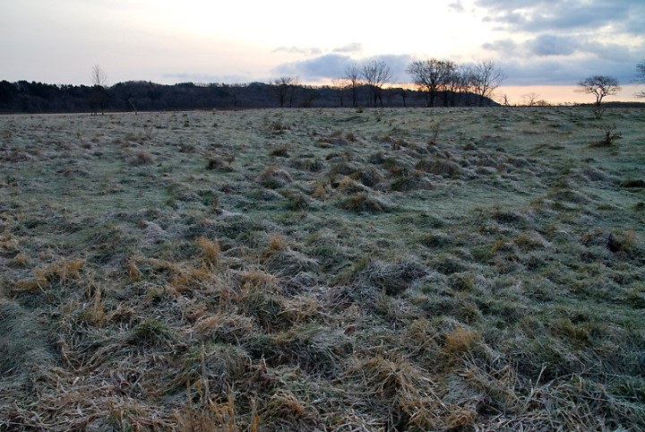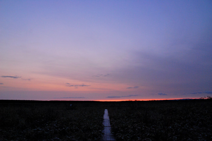 今年の冬は遅いです…。 12月なのにまだ雪が積もっておりません…。 ということで、雪が積もると行けなくなるパンケ沼へ…。 まだ木道を歩けます。 木道を歩いていると、寒さはそれなりなので、植物に霜が付着していました〜。ということで、今日の一枚です。 その後、日の出を見、パンケ沼を後にしました。 帰りに牧場を撮ってみました。このとおり、まだ雪がありません…。今年の冬はどうなるのでしょうか? |