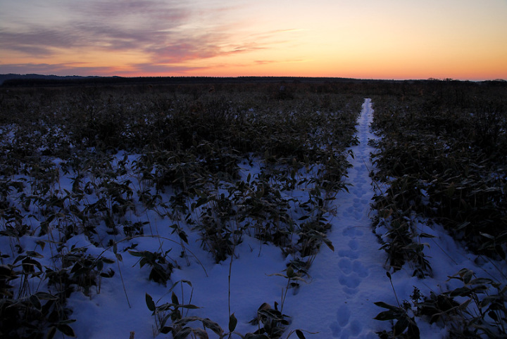 今年は雪がありません…。 雪が降りません…。 変な冬です。 普通の冬ですと、とっくに除雪されていないパンケ沼までの道を車で行くことができないのですが、今年はまだ車で行けてしまいます…。 サロベツ原野もこのとおり。 パンケ沼入口もこのとおり。 パンケ沼はだいぶんと氷結しております。 原野に朝陽が昇り、雪に埋もれることのないススキが風に漂っておりました。 今年の冬は雪が降るのかな? |