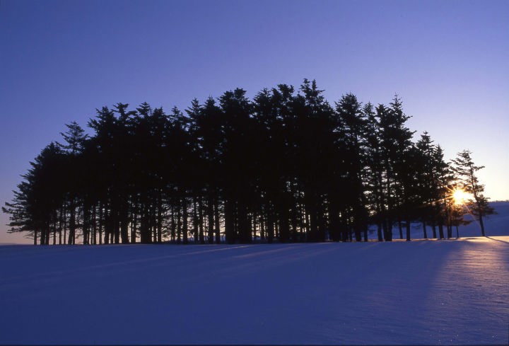 | 上の利尻山を撮影している場所です。右手にいつもの松林が見えます。 | ||