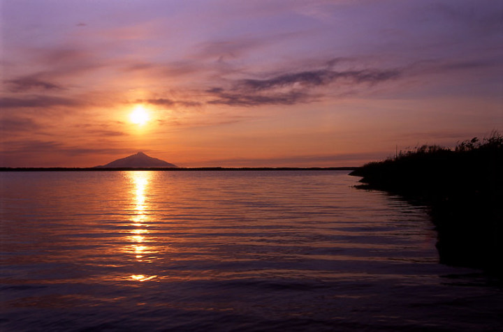 | ここからが、5月22日(日)の利尻山をメインにした写真です。これは、パンケ沼から見たようです。このときの「撮れたて画日記」もどうぞ。 | ||