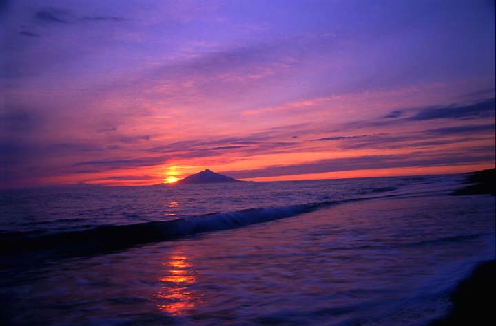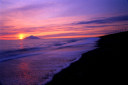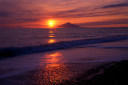 | 場所を浜里海岸に移しまして、利尻山を配し、波打ち際を撮影します。 | ||