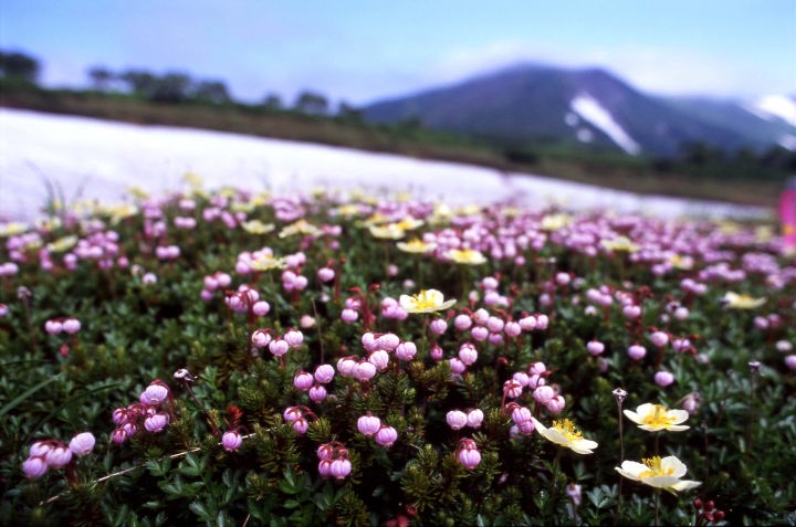 エゾノハクサンイチゲとエゾコザクラ (白雲岳避難小屋付近) |