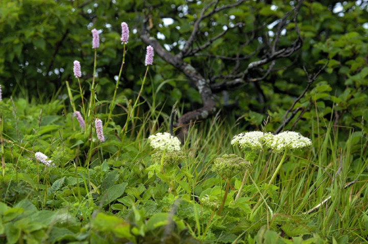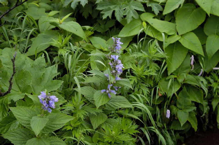 | 利尻山の花は、大部分が8合目より上に咲いております。ですから、ここからが楽しみとなるのですが…、出て早々に、風雨が強くなってきます。なので、カメラはなかなか出すことができません…。 そんな中でも何枚か撮影してきました。 避難小屋を出ると、イブキトラノオなどが咲いていました。(↓)ハイオトギリなどを咲いていました。 |