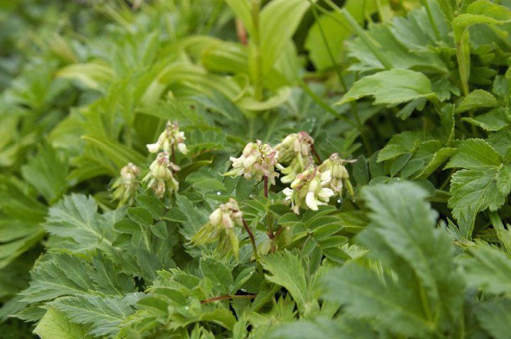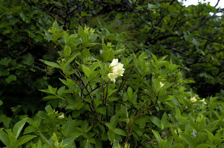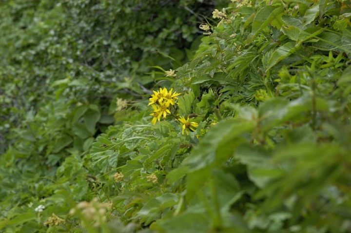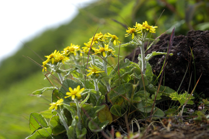 | そんな辛い登りではありますが、花々が至る所に咲いておりまして、目を楽しませてくれます。 ウコンウツギ、ミヤマアズマギク、トウゲブキ、リシリオウギ、チシマフウロ、ミソガワソウ、ミヤマオグルマ、キバナノコマノツメ、エゾツツジ、イワベンケイなどなど。 |
