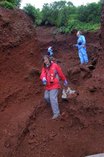 | 6合目、5合目とダラダラです。あと少し!! この辺りから、頭の中は"うに丼"でいっぱいです。そんなことばかり考えていては、危険なのでしょうけど、あまりの辛さに、現実逃避が始まり、うに丼をほお張る自分の姿を思い浮かべて、辛さを紛らわします。 |