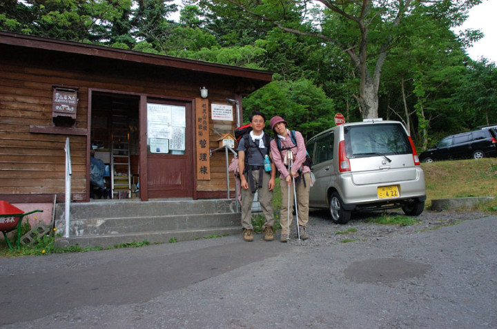 | なんだかんだ言いましても、無事下山することができました。 3合目の管理棟で下山届を出し、利尻山登山終了!!! が…、ここから、バンガローまでが長いこと長いこと…。しかもアスファルトを2.6キロ。私は、一番ここが辛かったと思います…。 |