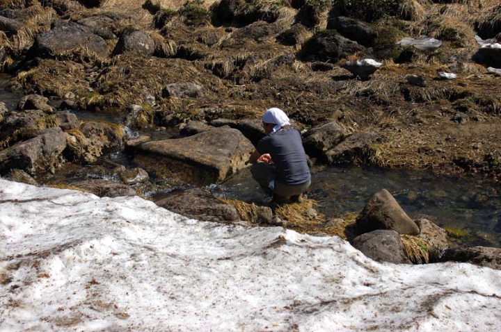 | 沢伝いに登ります。チングルマなどの高山植物も徐々に見られるようになってきました。 |