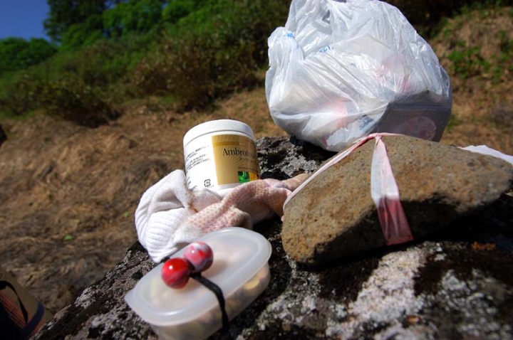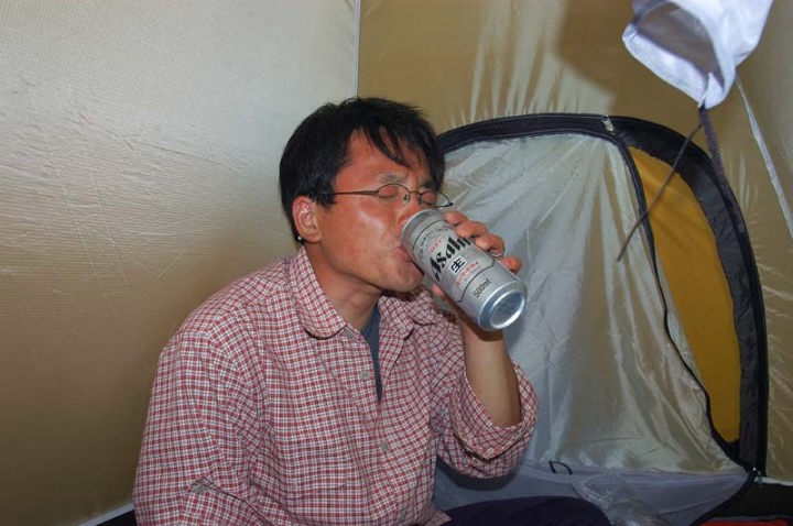 | そして、ようやく、蚊の大群からも解放され、しばし休憩…。少し食事と栄養補助食品もとりました。 |