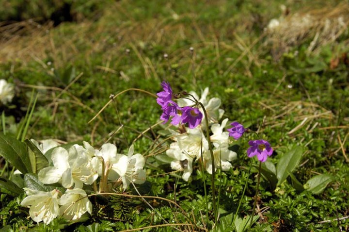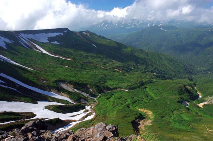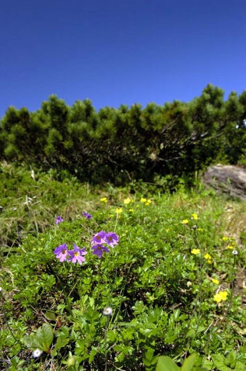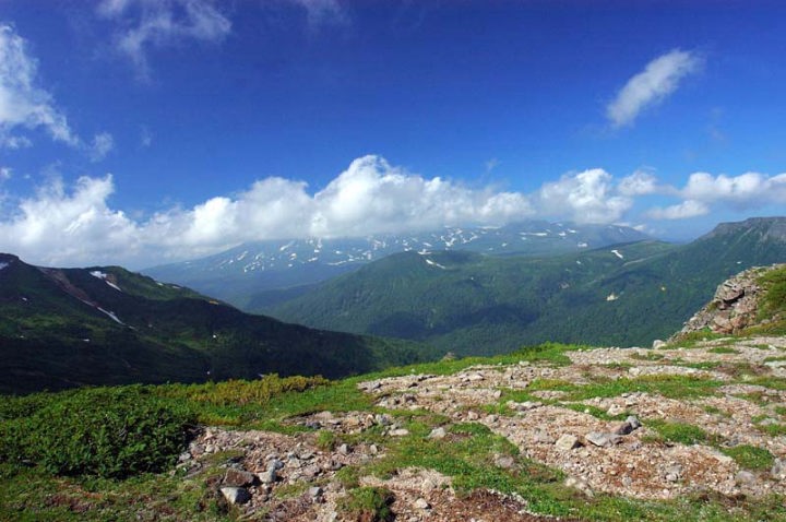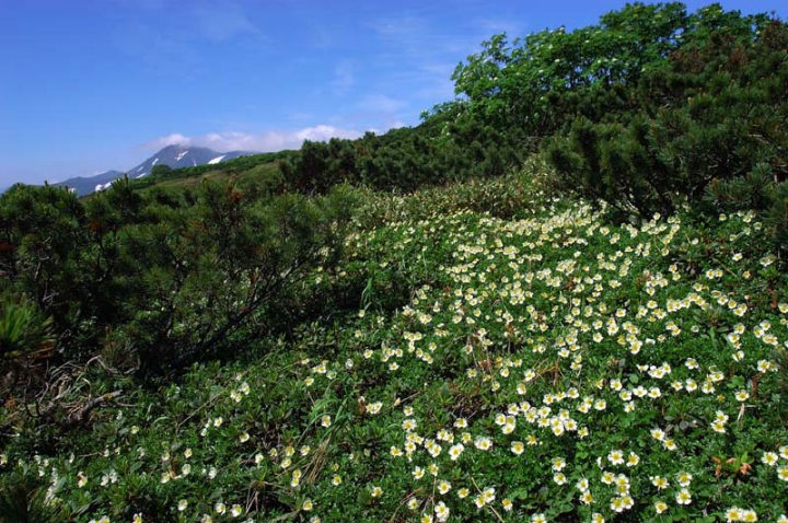 | そして、その後も数々のお花が迎えてくれました。エゾコザクラ、チングルマ、エゾノマルバシモツケ、エゾウサギギク、ミヤマリンドウなどなど。 五色岳を目指し、五色ヶ原を進みます。 |