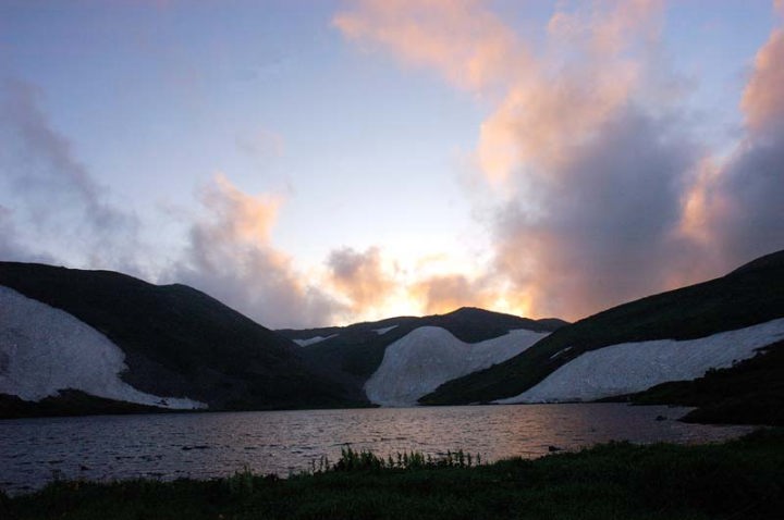 | 陽が暮れていきます。ちょっと遅めの夕食(あれ、ご飯か!?)をいただき、明日に備えます!! 明日は念願のトムラウシ!!晴れたらいいな〜。 では、お休みなさ〜い!! |