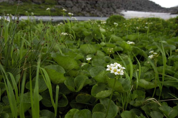 | そして、ようやく北沼に到着です。ここからが最後の頑張りどころ。かなりの登りです。あまり花は咲いておりませんが、チシマクモマグサが終わり頃という感じで咲いておりました。 |