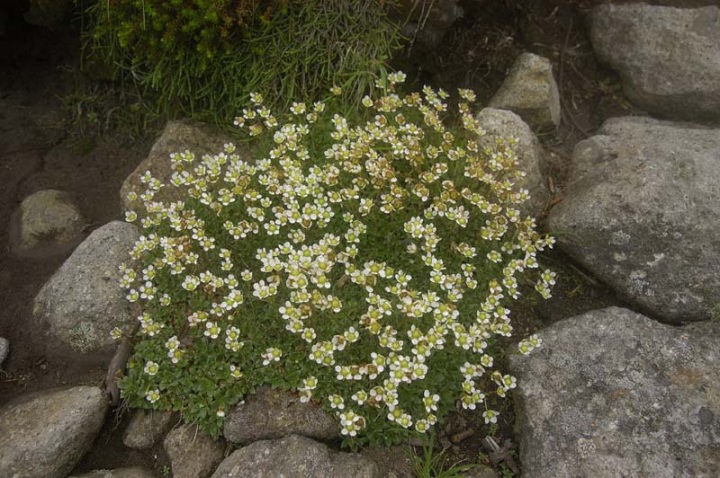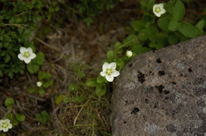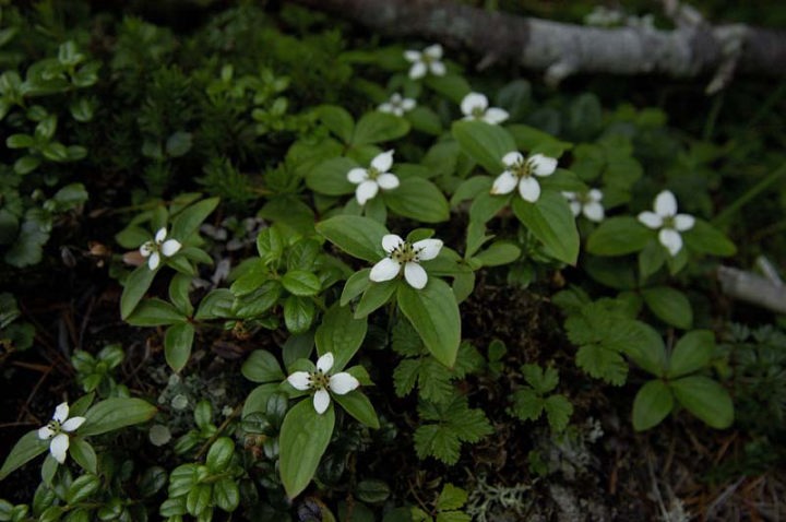 そして、いよいよロックガーデンに突入!! 本当に、巨岩帯がこれでもかというくらい続きます。大きな岩を一つずつ足元を確かめながら進みます。下ってくる登山者との交差も気にしながらの山行です。ところどころにゴゼンタチバナが咲いております。 |