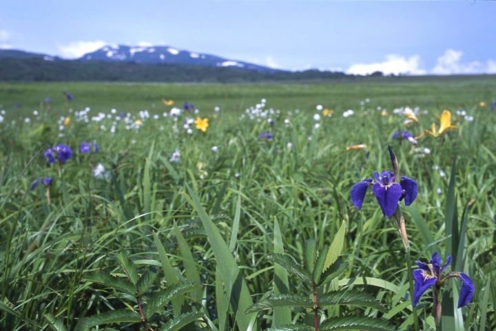 ワタスゲとヒオウギアヤメ